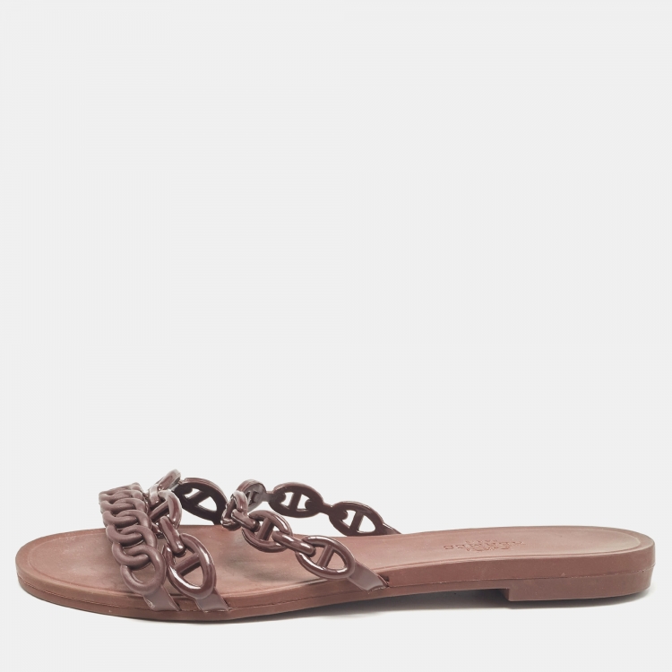 Hermès Brown Rubber Chaine d'Ancre Rivage Flats 35