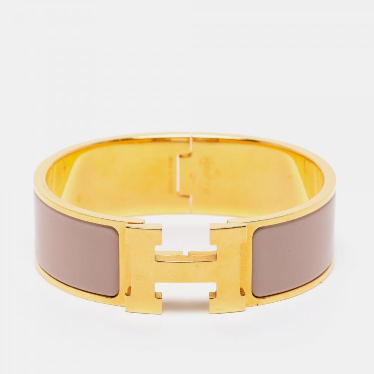 Pre Owned Hermès Clic Clac H Pink Enamel Gold Plated Wide Bracelet