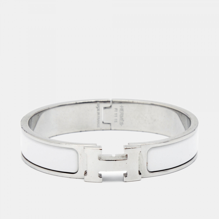 مملوكة مسبقًا Hermes Clic H White Enamel Palladium Plated Bracelet
