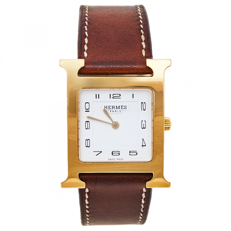 ساعة يد نسائية هيرمس هور H HH1.501 ستانلس ستيل مطلي ذهب بيضاء 26مم