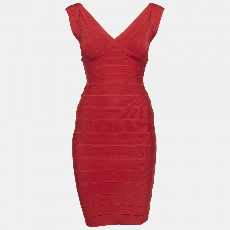 مملوكة مسبقًا فستان باندج هيرفي ليجي وردي مزيج رايون ضيق قصير صغير جدًا
