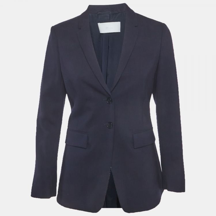 Pre Owned جاكيت بليزر هوغو بوس صوف فيرجن أزرق كحلي بأزرار أمامية صغير