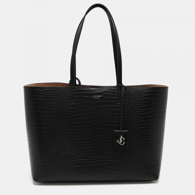 Jimmy Choo Black Croc Embossed Leather Deelan Tote
