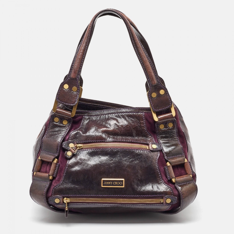 Pre Owned حقيبة ساتشل جيمي تشو مهالا جلد براءة أرجواني وبني داكن ومخمل