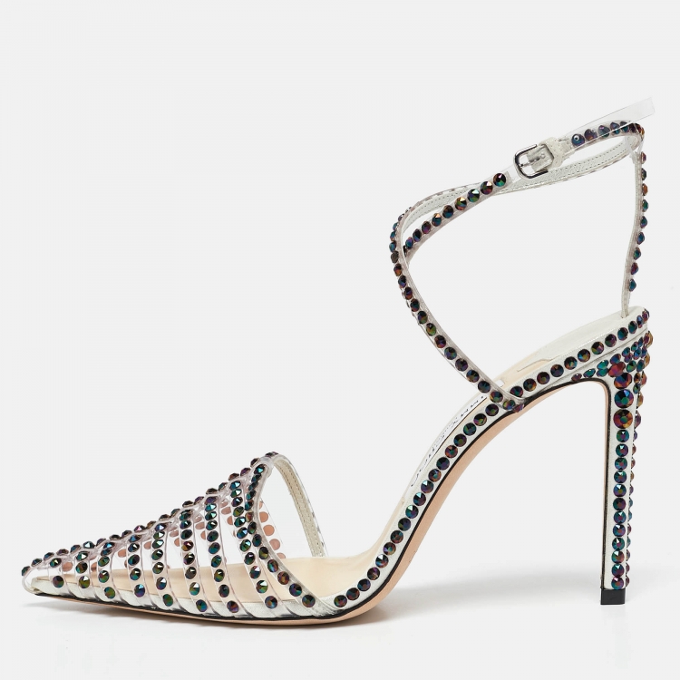 صندل تاماي جيمي تشو شفاف PVC مرصع بالكريستال مقاس 37.5