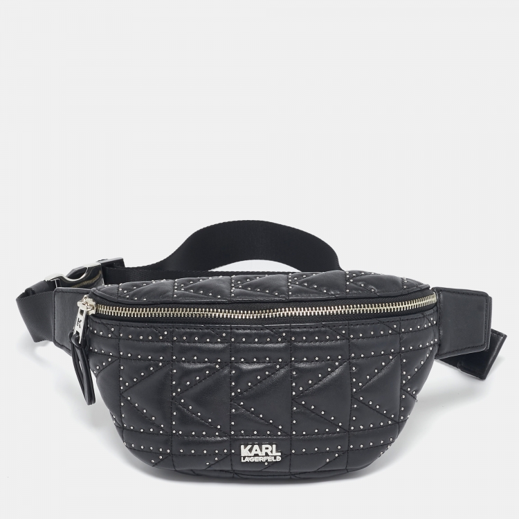 Karl Lagerfeld Black Quilted Leather Studded K/Kuilted Belt Bag