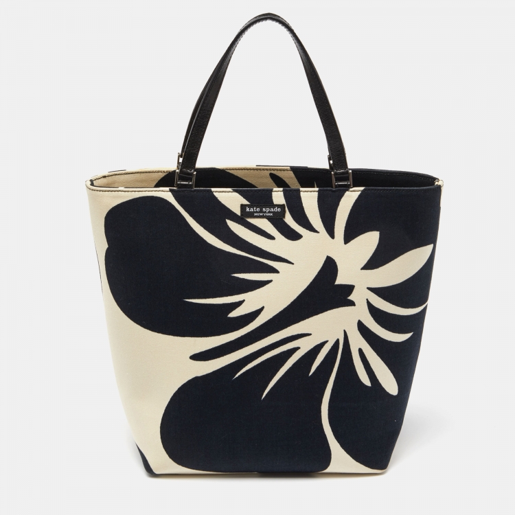 Kate Spade Black/White Hibiscus Printed Canvas Tote