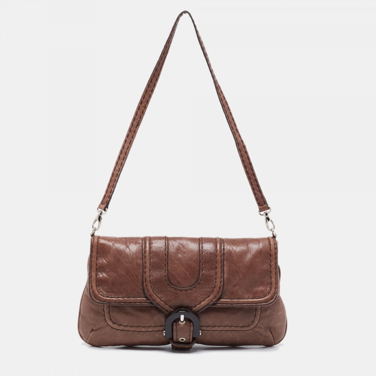 Kenzo Brown Leather Buckle Flap Baguette Bag