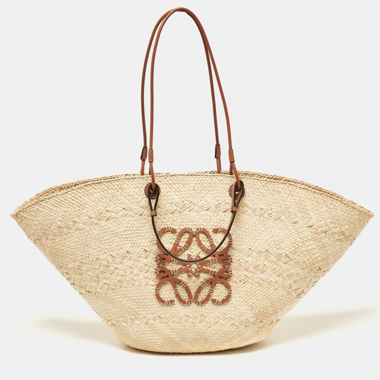 Loewe Beige/Brown Raffia and Leather Large Anagram Basket Tote