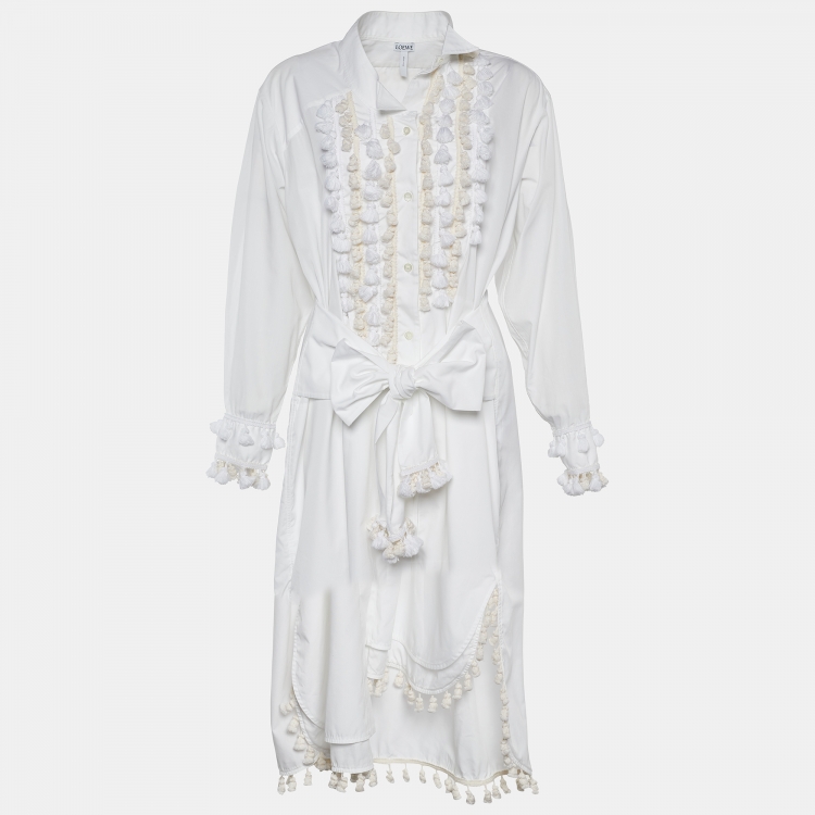 Loewe White Poplin Tasseled Tie Detail Shirt Dress S