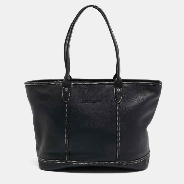 Longchamp Black Leather Shopper Tote