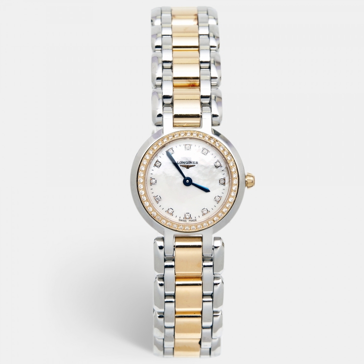 Longines Mother Of Pearl 18K Rose Gold Stainless Steel Diamond PrimaLuna L8.109.5.89.6 Women's Wristwatch 23 mm