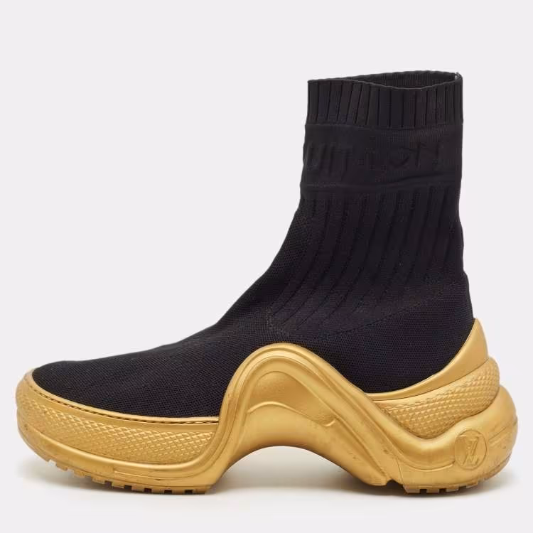 حذاء بوت رياضي لوي فيتون قماش تريكو أسود أرش لايت بعنق مرتفع مقاس 38