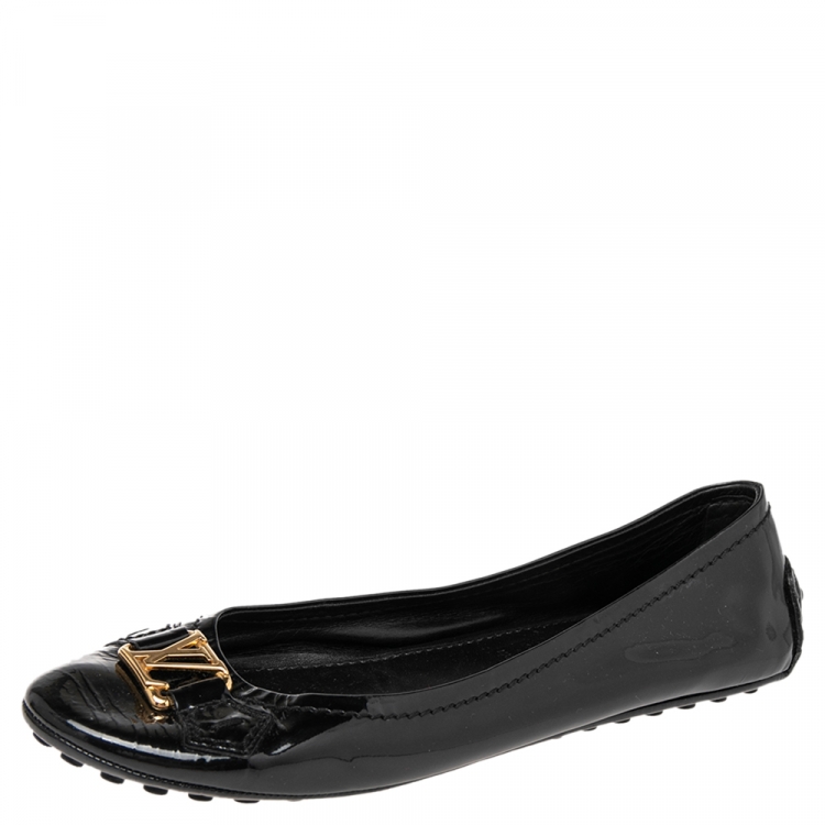 مملوكة مسبقًا حذاء فلات باليه أكسفورد لوي فيتون جلد لامع أسود مقاس 37.5