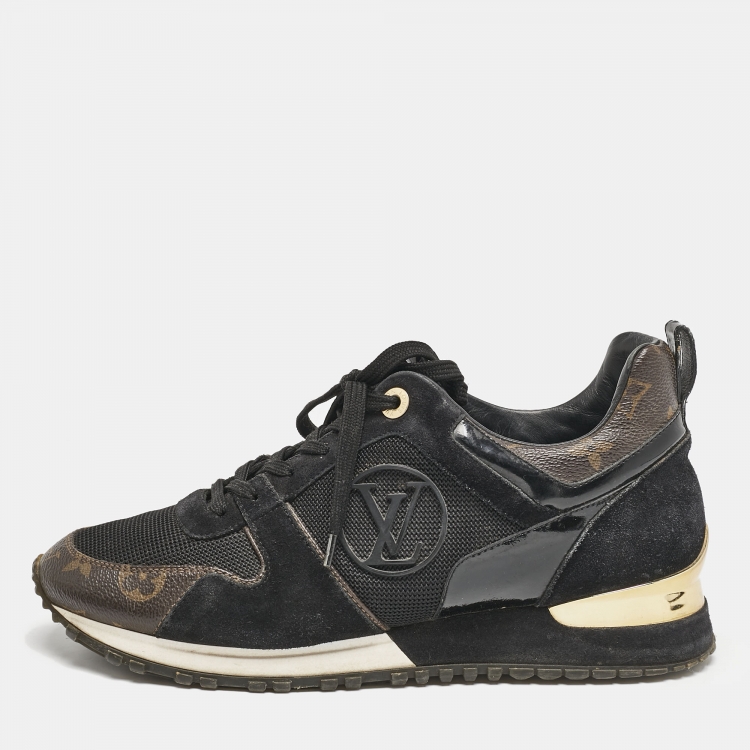 Pre Owned حذاء رياضي لوي فيتون راناواي كانفاس مونوغرامي وسويدي أسود/بني بعنق منخفض مقاس 37.5