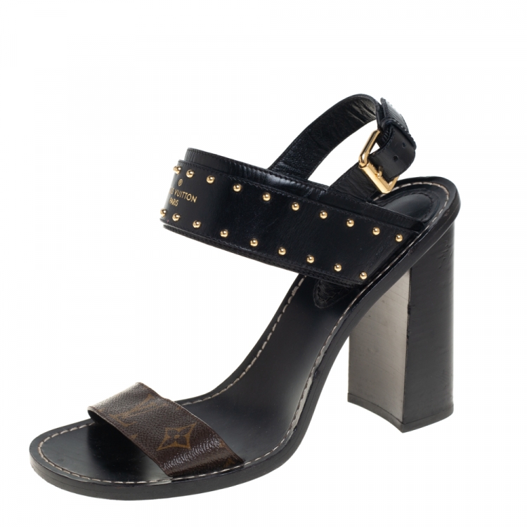 صندل لوي فيتون نوماد سير كاحل جلد مرصع وكانفاس مونوغرام أسود/بني مقاس 41
