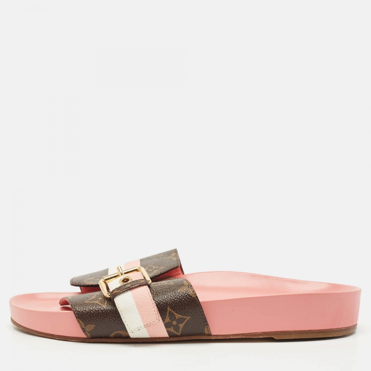 صندل مسطح لوي فيتون بوم ديا بقماش مونوجرام بني مع إبزيم مقاس 39