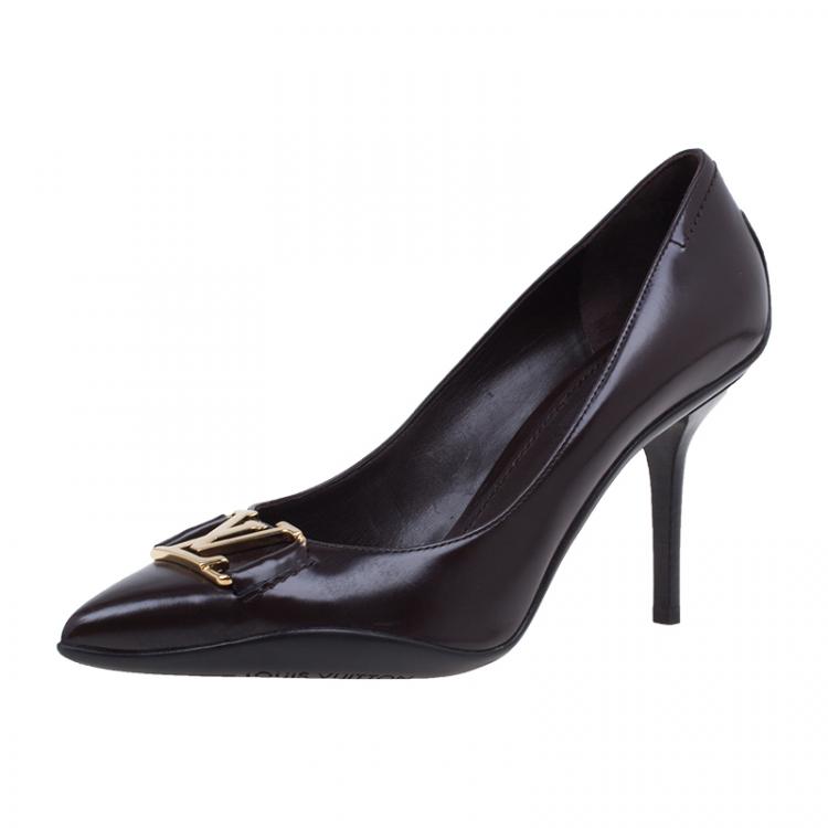 مملوكة مسبقًا حذاء لوي فيتون مقدمة مدببة شعار كعب مرتفع جلد لامع بني مقاس 38