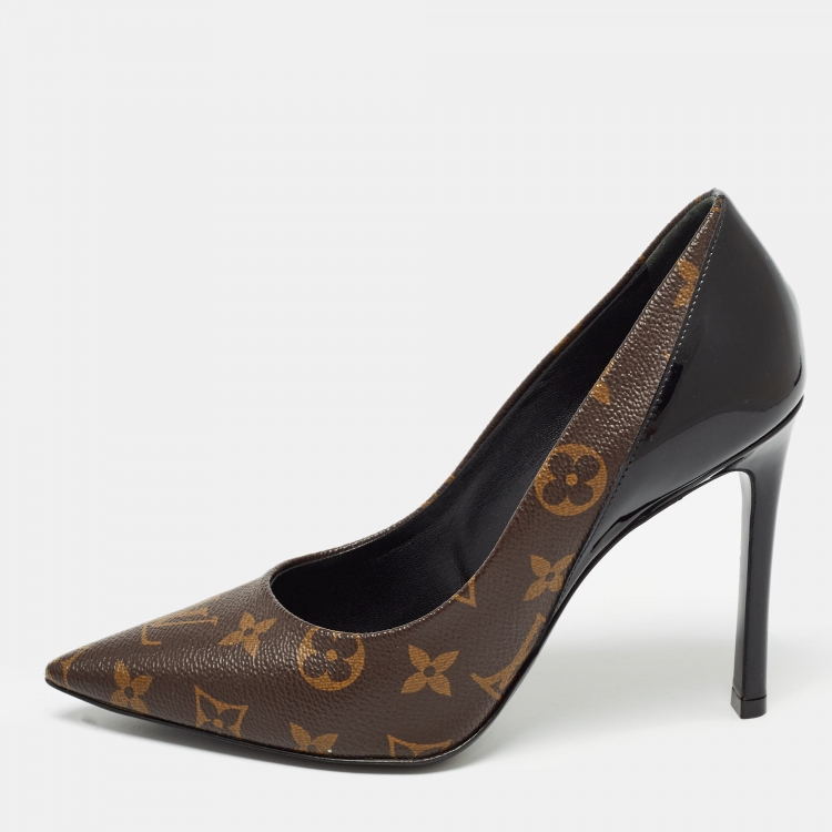 Louis Vuitton Brown/Black Monogram Canvas and Patent Cherie Pumps Size 37