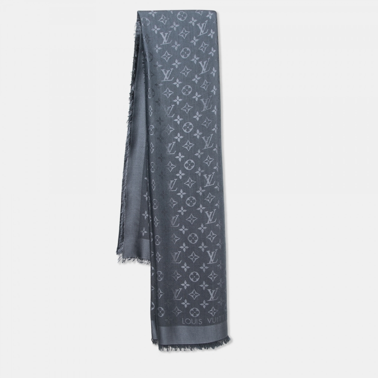 مملوكة مسبقًا Louis Vuitton Charcoal Grey Silk & Wool Classique Monogram Shawl
