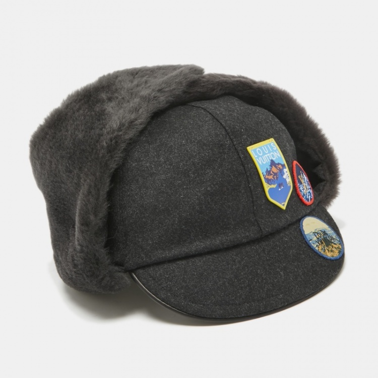قبعة فخارية من الصوف مع فرو من لوي فيتون رمادية جبال الألب ذات حجم 60