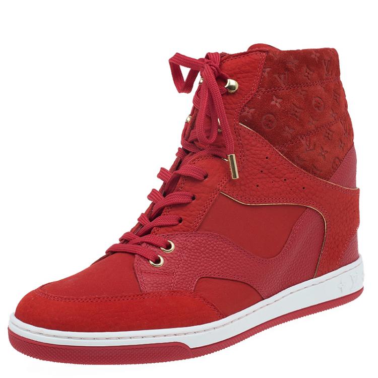حذاء رياضي لوي فيتون كليف جلد أحمر وسويدي مقاس 39.5
