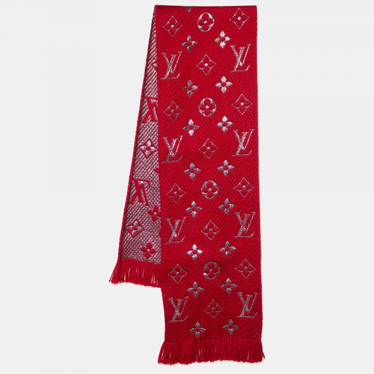 Louis Vuitton Red Logomania Wool & Silk Shine Scarf