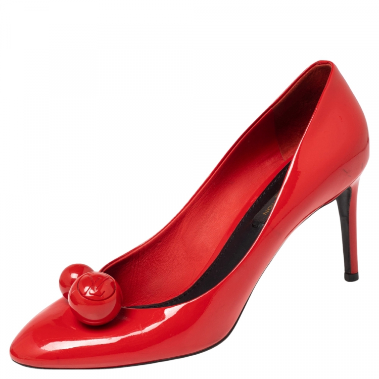 حذاء كعب عالي لوي فيتون بيتي جلد لامع أحمر مقاس 37.5