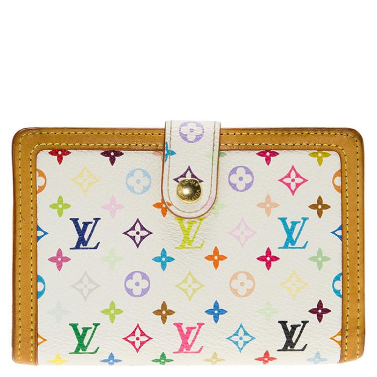 محفظة لوي فيتون محفظة نقود فرنسية كانفاس مونوغرامي متعددة الألوان بيضاء