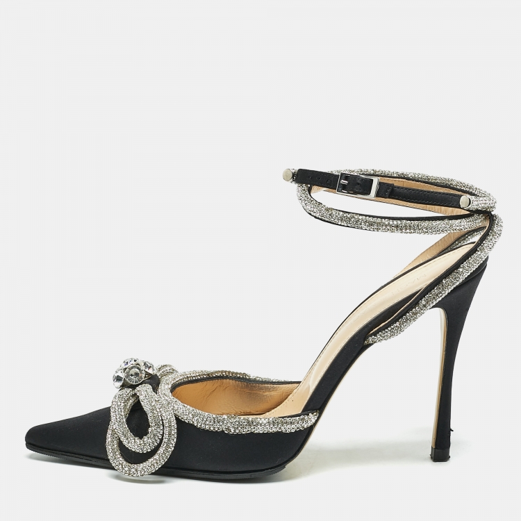 Pre Owned حذاء كعب عالي ماك & ماك ساتان أسود مزين بالكريستال بفونكتين وحزام للكاحل مقاس 39
