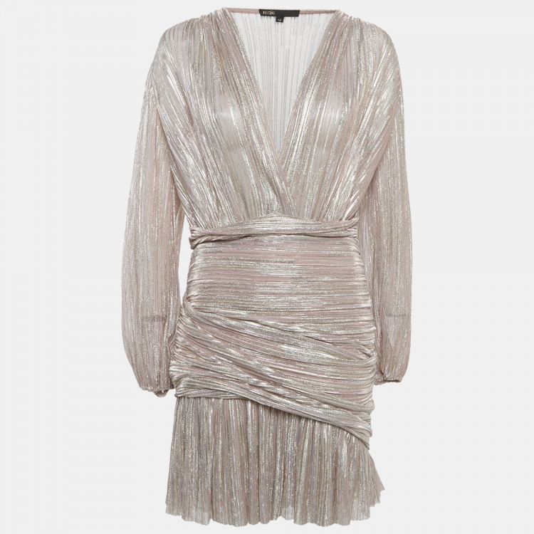 فستان ميني من ماج بلوركس ميتاليك وردي مفتوح الرقبة وبطيات مقاس كبير