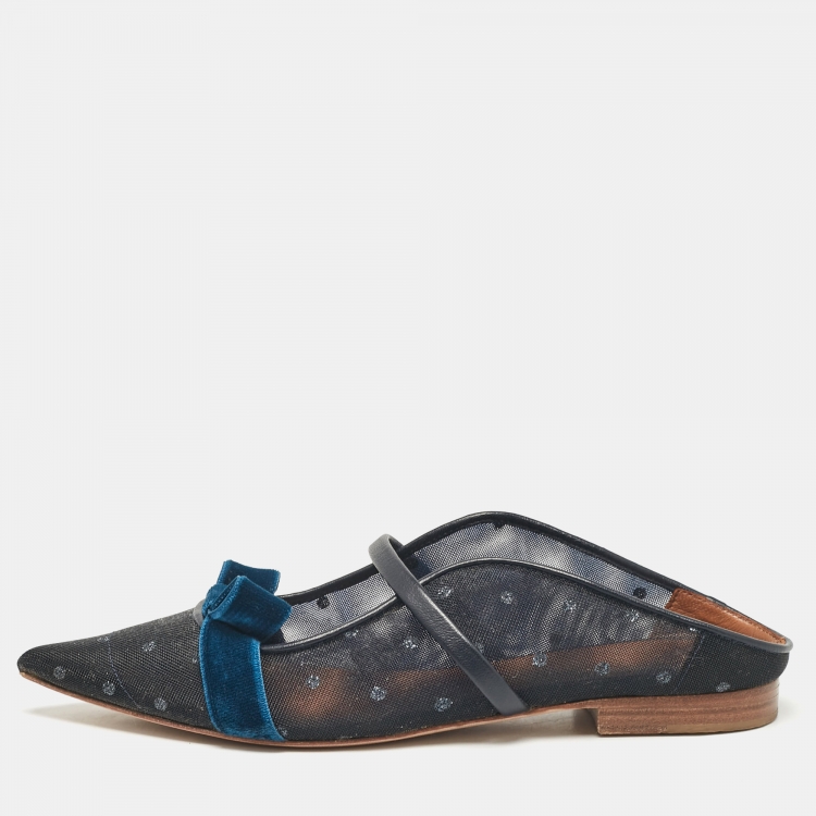 صندل فلات مالون سولييه مورين مخملي وشبكي أزرق/أسود مقاس 35