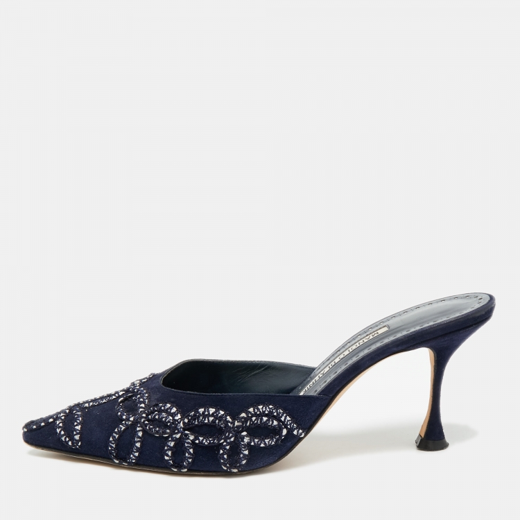 مملوكة مسبقًا حذاء سلايد مانولو بلانيك سويدي أزرق كحلي مقاس 38.5