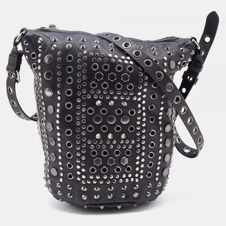 Marc by Marc Jacobs Black Leather Embellished Bucket Bag