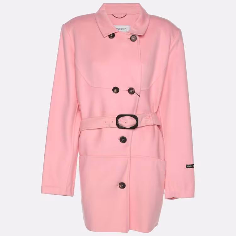 مملوكة مسبقًا بليزر مارينا رينالدي وردي مزيج صوف بزرارين بحزام مقاس كبير