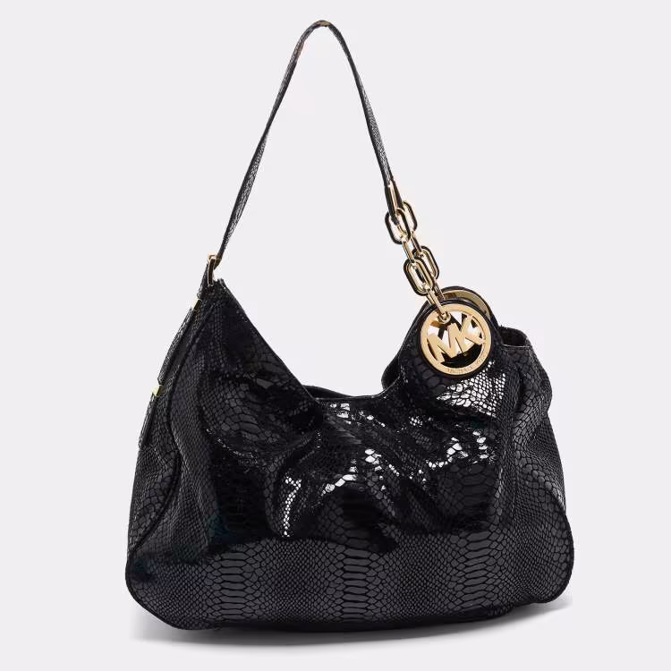 مملوكة مسبقًا حقيبة هوبو مايكل مايكل كورس فولتون جلد بنقوش جلد الثعبان أسود