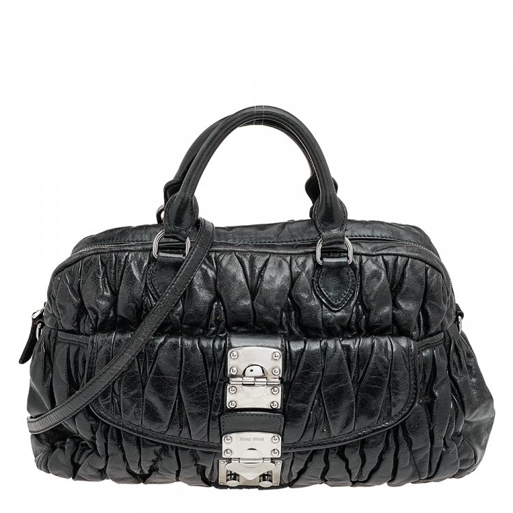 مملوكة مسبقًا حقيبة يد توتس ميو ميو جلد ماتيلاس أسود