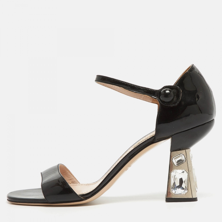 Pre Owned Miu Miu Black Patent Leather Ankle Strap Sandals Size 40