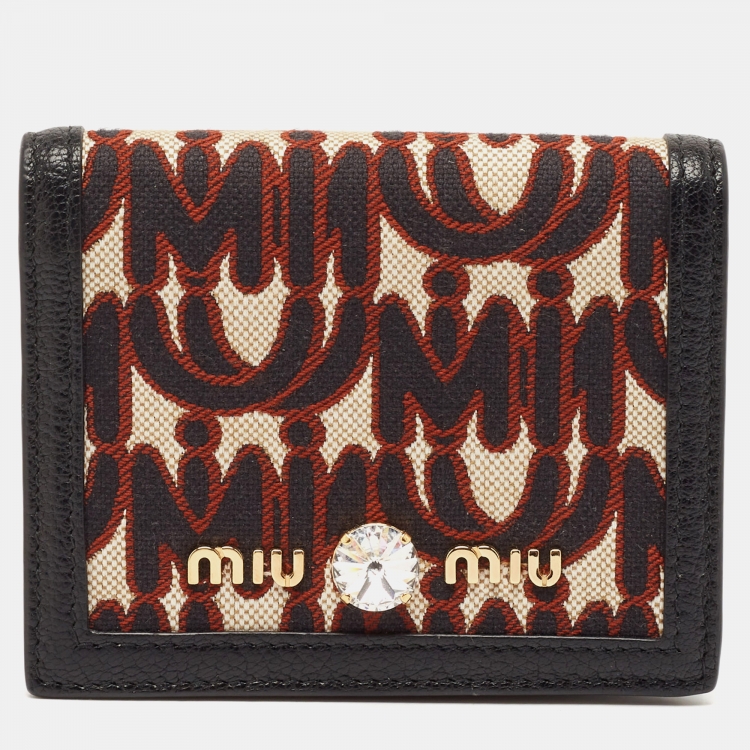 مملوكة مسبقًا محفظة بيفولد �ميو ميو جلد مادراس وقماش مزين بنقوش سوداء/بنية