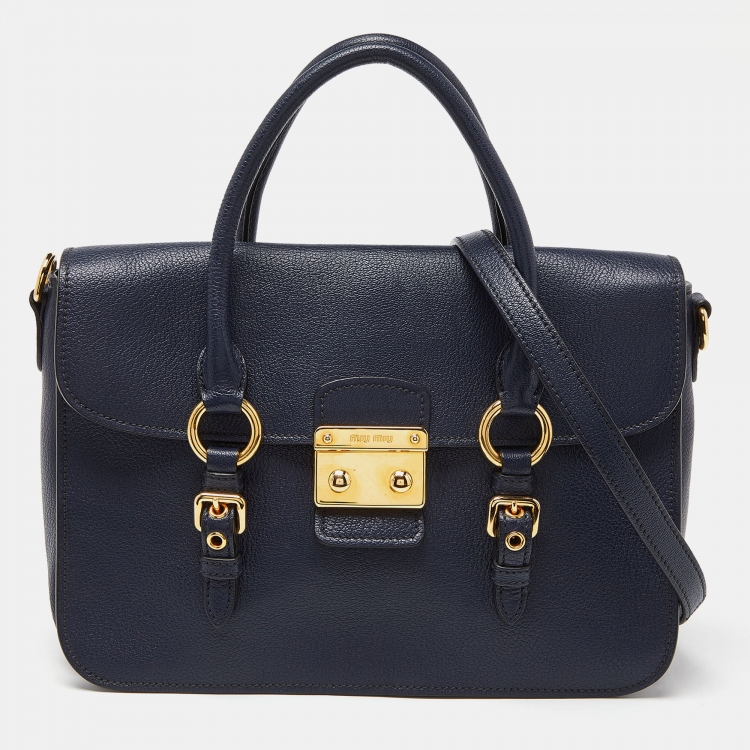 Pre Owned Miu Miu Blue Madras Leather Flap Satchel