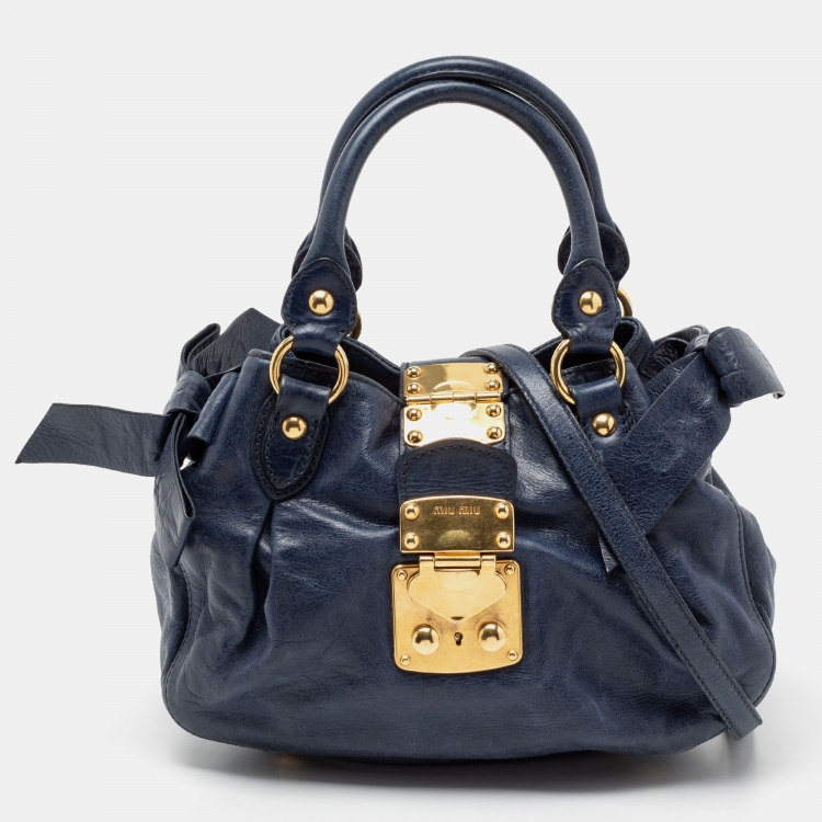 Pre Owned حقيبة ساتشل ميو ميو جلد ممزق أزرق كحلي بفيونكة