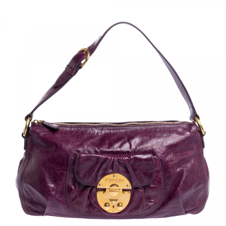 مملوكة مسبقًا حقيبة هوبو ميو ميو جيب أمامي جلد بنفسجي