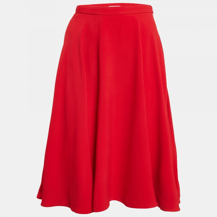 Pre Owned تنورة ميو ميو كريب أحمر قصيرة متسعة مقاس صغير - سمول