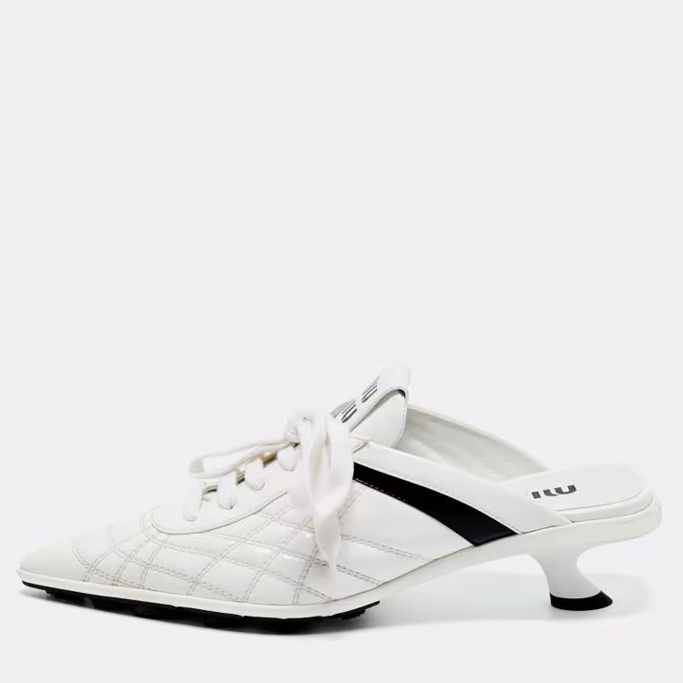مملوكة مسبقًا حذاء ميوميو ميول سنيكر جلد لامع أبيض مقاس 37.5