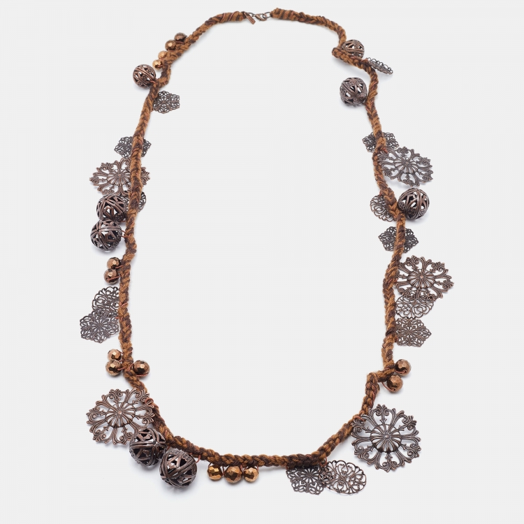 Moschino Brown Braided Charm Detail Long Necklace