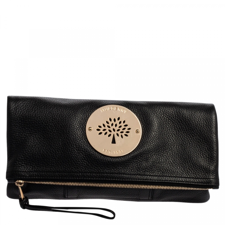 مملوكة مسبقًا حقيبة كلتش مالبري داريا جلد أسود بقلاب