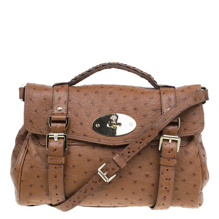 حقيبة يد مالبري أليكسا جلد نعام بني