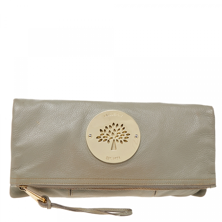 Pre Owned حقيبة كلتش مالبري داريا جلد رصاصي مطوية