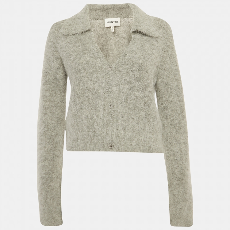 Pre Owned كارديجان مونثي رمادي صوف موهير بزرار مقاس صغير