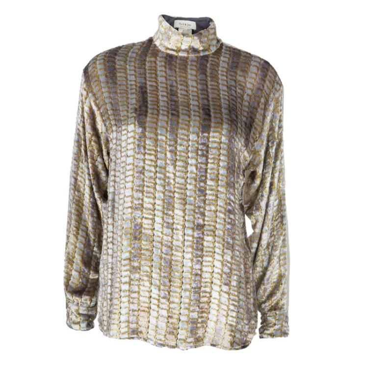Pre Owned توب بول أند جو قطيفة لامع بأكمام طويلة ياقة ضيقة M
